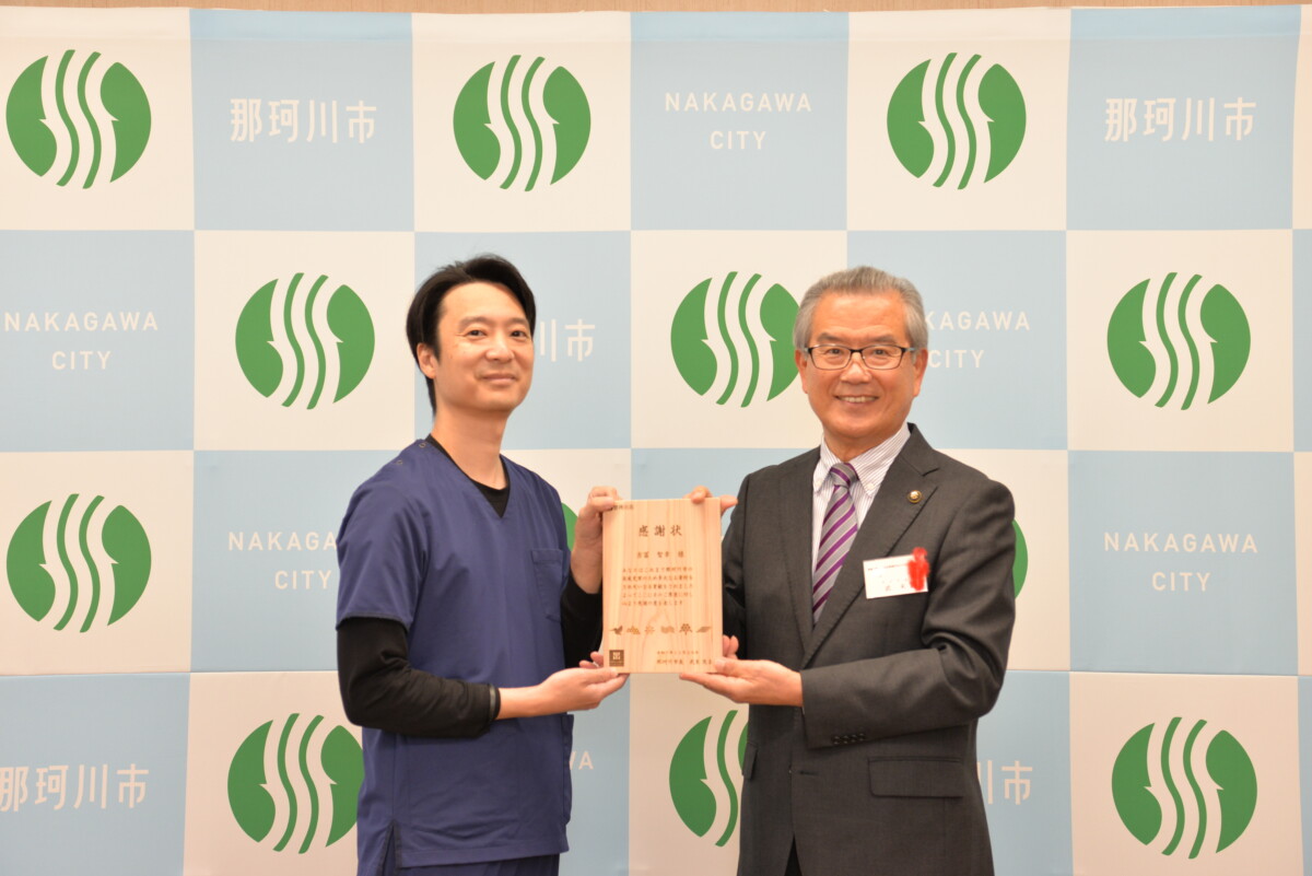 当院では開院以来、地域貢献の一環として那珂川市への寄付を継続しています。2025年11月26日、那珂川市役所にて今年度の寄付贈呈式が執り行われ、市長をはじめ関係者の皆様に温かく迎えていただきました。